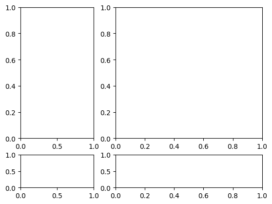 GridSpec创建更灵活布局pythonimport matplotlib.gridspec as gridspec # 创建2行2列4个子图,横向比例1:2,纵向比例4:1 gs = gridspec.GridSpec(2, 2, width_ratios=[1, 2], height_ratios=[4, 1]) ax1 = plt.subplot(gs[0]) ax2 = plt.subplot(gs[1]) ax3 = plt.subplot(gs[2]) ax4 = plt.subplot(gs[3])