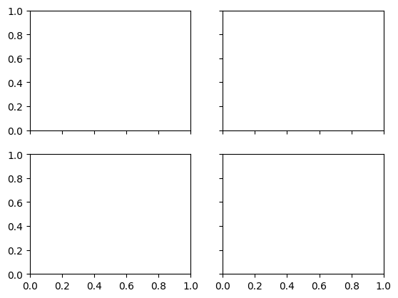 fig, axes = plt.subplots(2, 2, sharex=True, sharey=True)