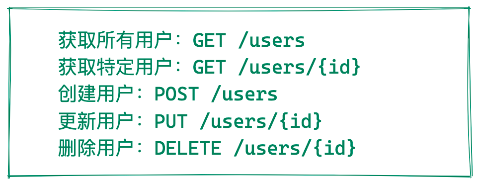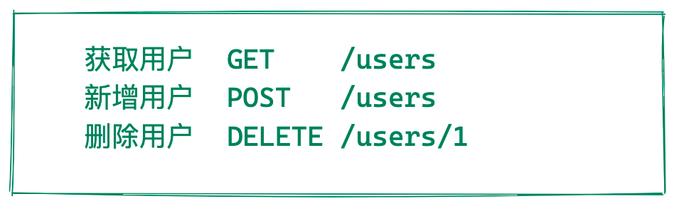 这是 RESTful API 的核心,它致力于让服务端业务逻辑以 统一API 的方式向客户端提供服务,在一个完全遵循 RESTful 的团队里,后端只需要告诉前端 /users 这个 API,前端就应该知道: - 获取所有用户: